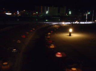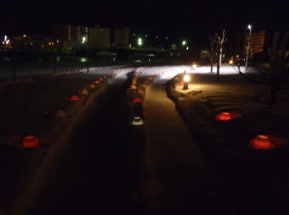 | 「オホーツク流氷の日〜流氷守らナイト in 網走」のお手伝いに参加しました。 2月15日(土)に実施されましたオホーツク流氷の日〜流氷守らナイト in 網走に於きまして アイスキャンドルの設置を行いました。 アイスキャンドルを設置した箇所は「網走文化交流センター敷地内」で当社は道路管理セン ター網走支部、道路防災エキスパート、鈴木工業(株)、(株)丸田組と共に文化交流センター 敷地内第3駐車場側からレストラン横入口までを担当し、約150個設置しました。 実施時間 16日:17時〜19時迄 17日:17時〜19時迄 |